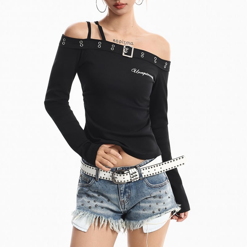Off-shoulder long sleeve belt detail cut and sewn la2681