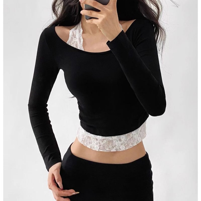 long-sleeve short-length top cut and sew la2688