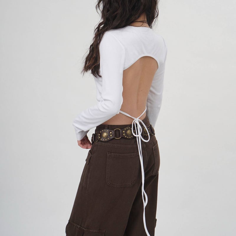 Back open long-sleeve cropped cut-and-sew la2759