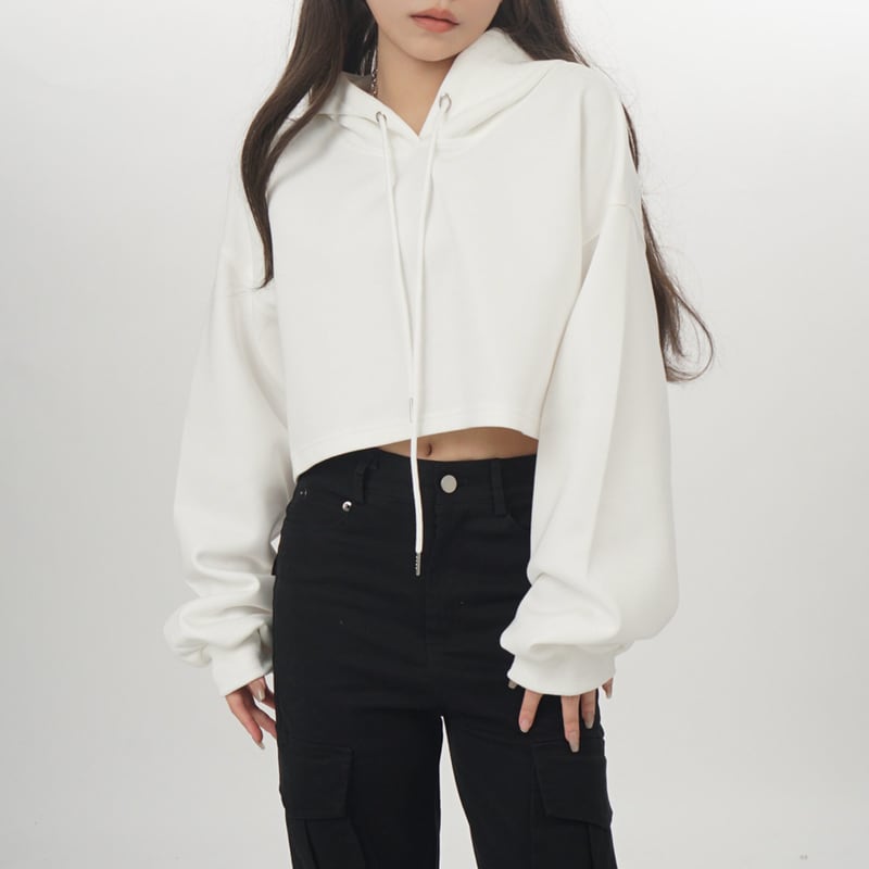 ルーズなシルエットが魅力のクロップド丈長袖フーディ。カジュアルながらもトレンド感のある着こなしが叶います。普段使いはもちろん、アクティブなシーンにもおすすめです。