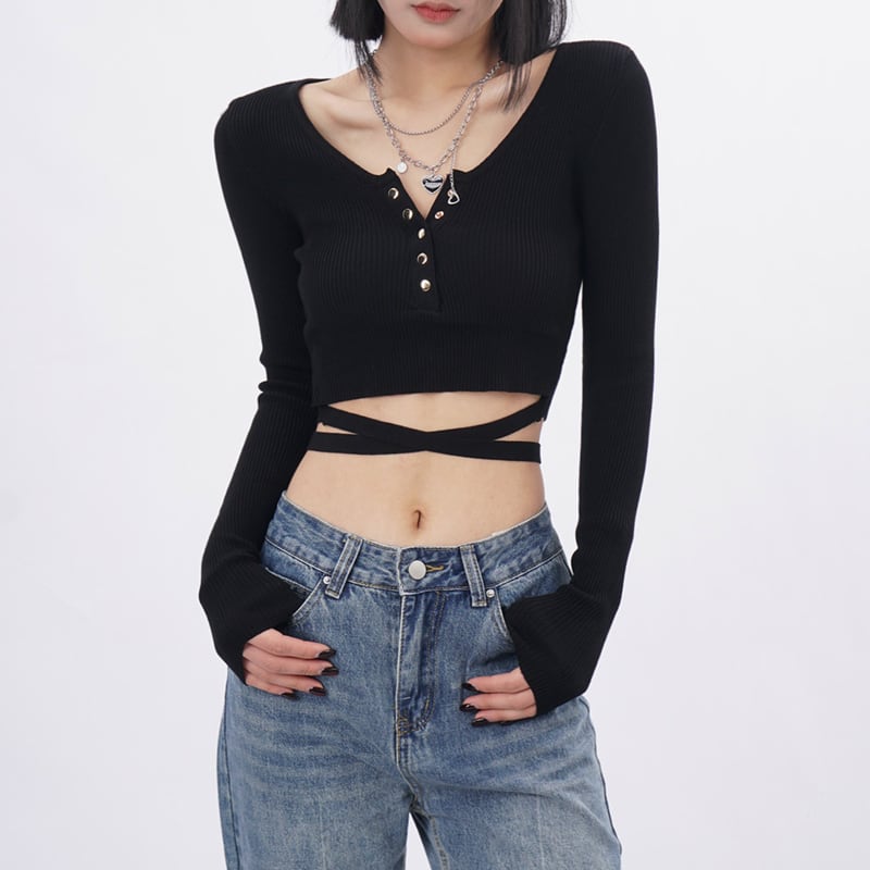 シンプルなデザインで着回し力抜群の長袖クロップドトップス。程よい丈感で、様々なボトムスとバランス良く合わせられます。カジュアルながらも女性らしい印象を与え、普段のコーディネートをアップデートしてくれます。