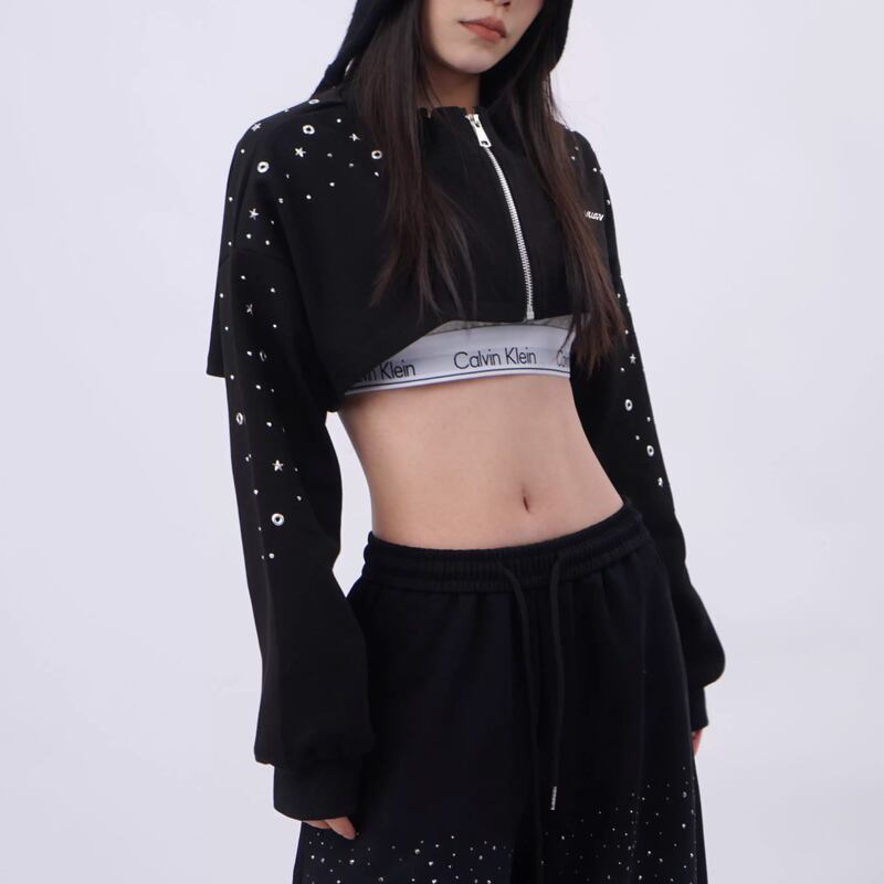 トレンドの着こなしが叶う、クロップド丈のジップアップパーカー。カジュアルながらも、すっきりとしたシルエットでスタイルアップ効果も期待できます。普段使いはもちろん、ダンスやフィットネスなどアクティブなシーンにもおすすめです