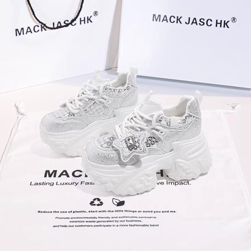 rhinestone lace-up thick-soled sneakers la2793