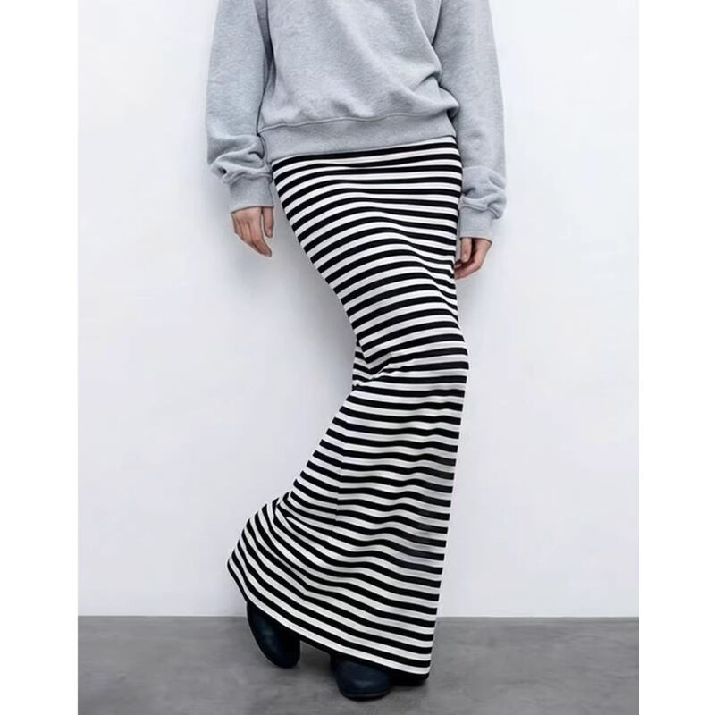 カジュアルにもきれいめにも着こなせる、ボーダー柄マキシ丈タイトスカート。