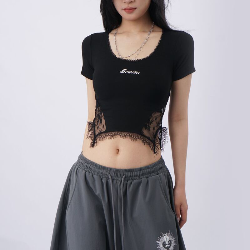 lace short sleeve cropped t-shirt la2838