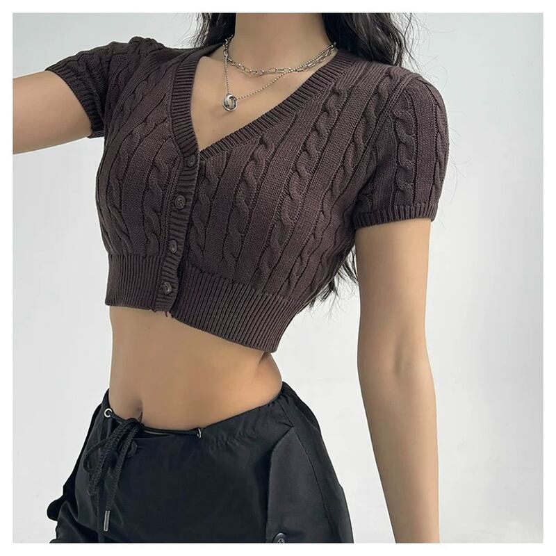 cable knit short length short sleeve knit cardigan la2847