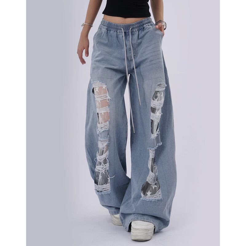 ダメージ加工がこなれ感を演出するワイドデニムパンツ。