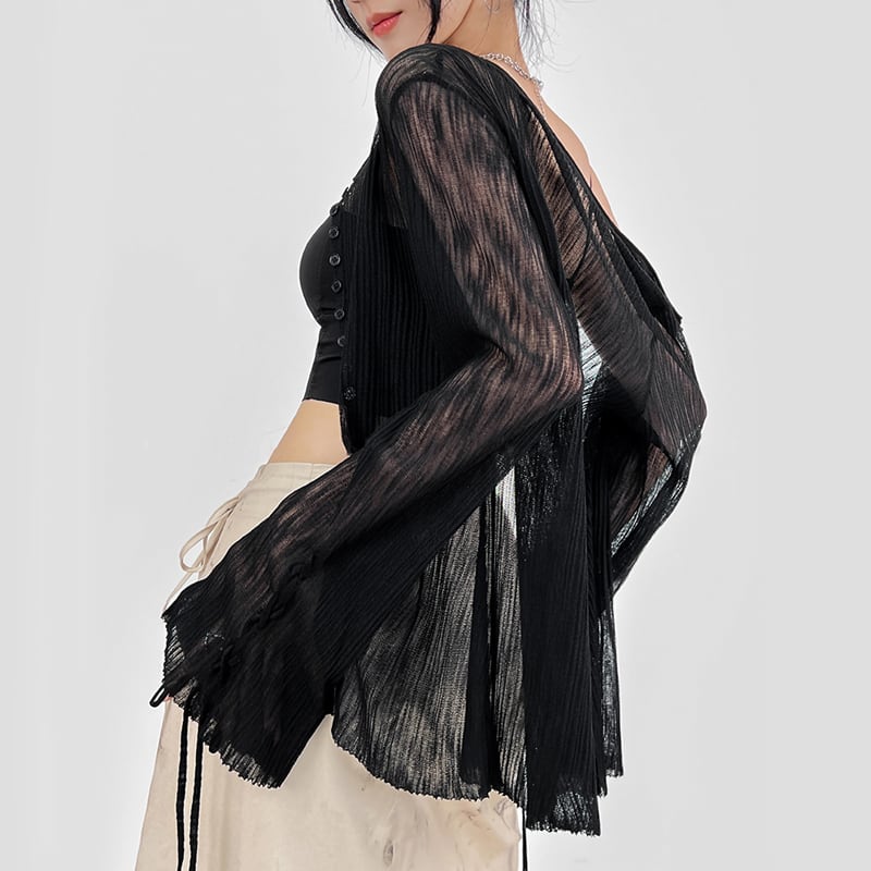 広がった袖口が女性らしくエレガントな雰囲気を演出してくれます。