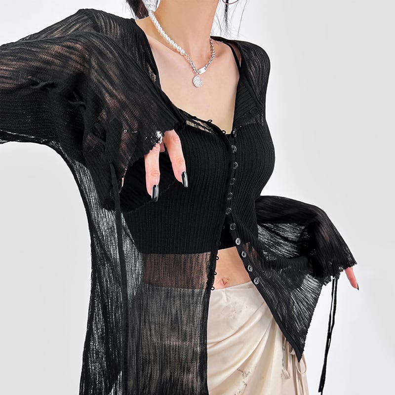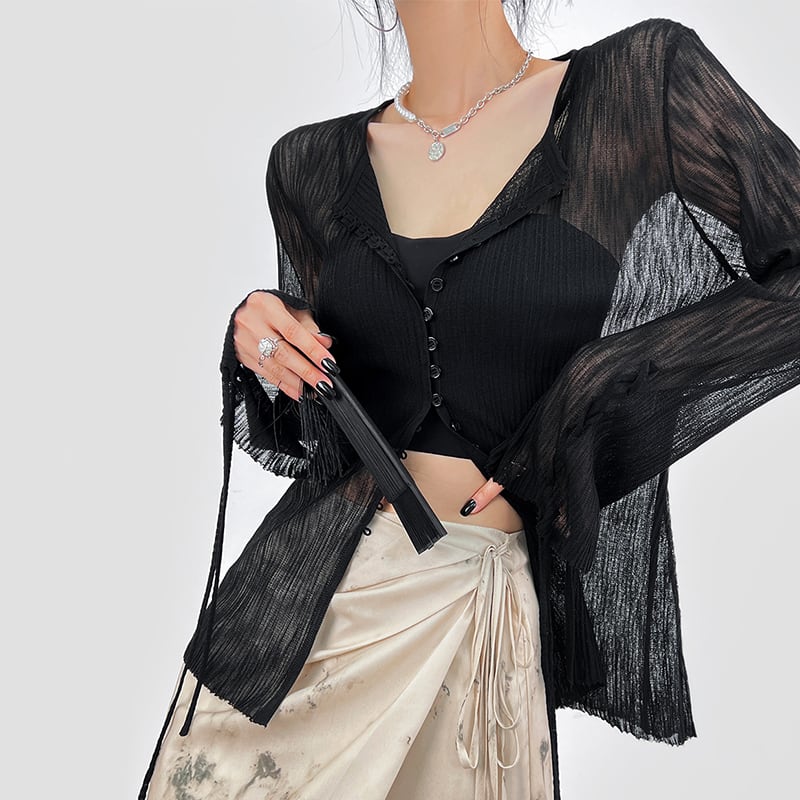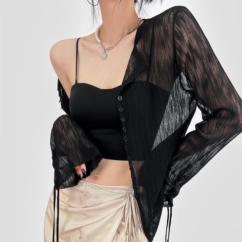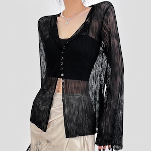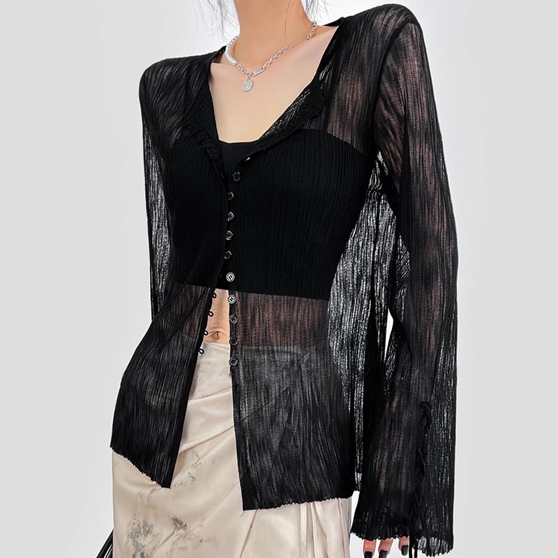 ほのかな透け感で大人な女性を引き立てるシアーブラウス。