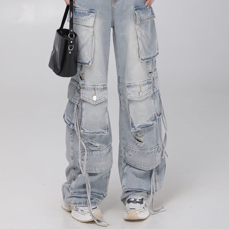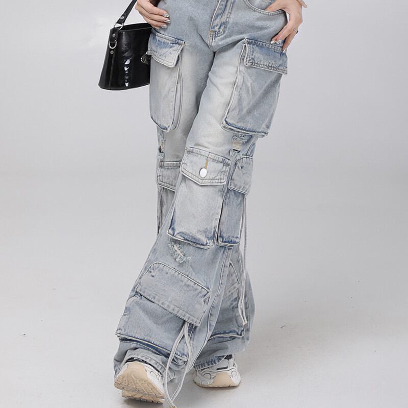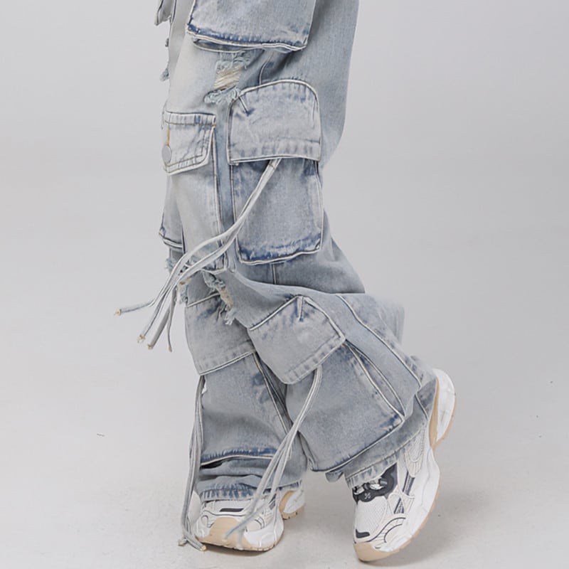 ストリートファッションからアウトドアまで幅広いシーンで活躍する、ワイドレッグカーゴデニムパンツ。
