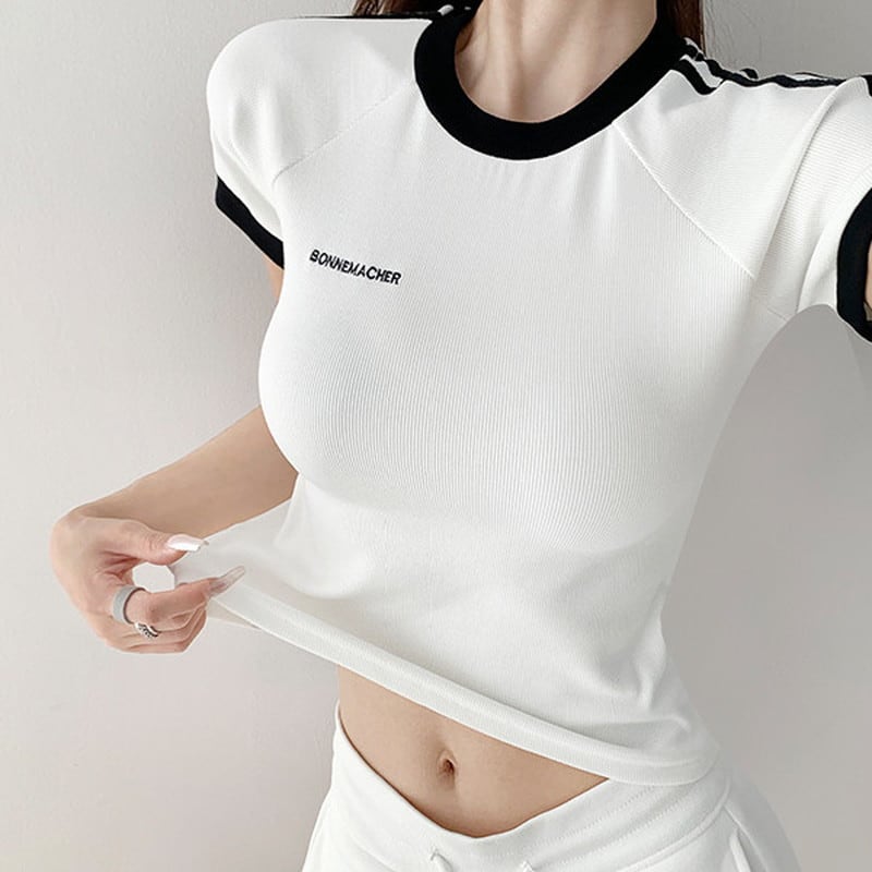 shoulder stripe bicolor tops la0710