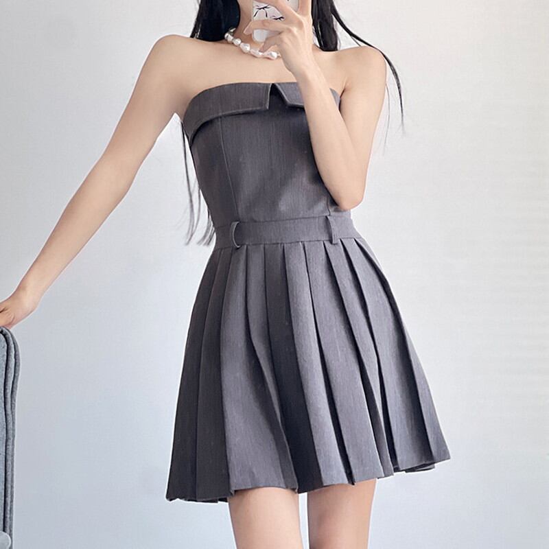魅力的なデザインでおしゃれを演出する、チューブトッププリーツミニワンピース。