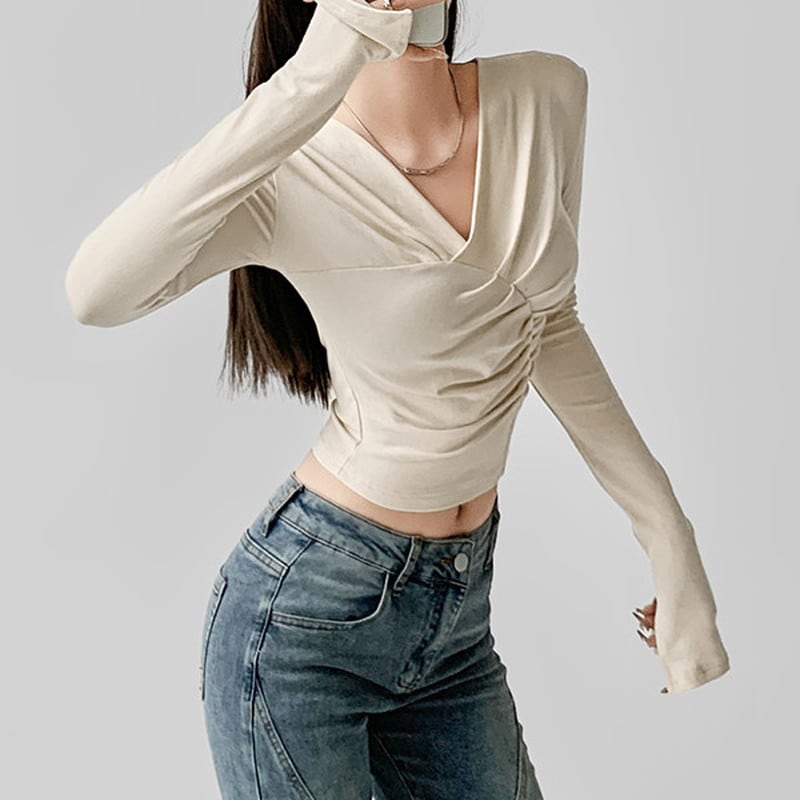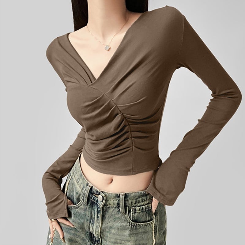 あなたの日常に新しいエッセンスを取り入れる、Vネックギャザークロップドトップ。 Vネックラインとギャザーが女性らしい印象を演出し、クロップド丈でウエストラインを美しく見せることができます。 シンプルながらも、存在感のある一枚は、カジュアルからキレイめまで幅広いスタイリングに対応。 【サイズ】 S:肩幅37cm/バスト73cm/袖丈66cm/着丈44cm M:肩幅38cm/バスト77cm/袖丈67cm/着丈45cm 【カラー】 ・アプリコット ・ダークグレー ・ブラック ・ブラウン *Lavissyで人気のアイテムはこちら♪ https://www.lavissy-fashion.shop/categories/2816592 *新商品入荷中!/SALE情報をcheck https://www.lavissy-fashion.shop/ **ご購入前に必ずお読みください** https://www.lavissy-fashion.shop/blog/2020/07/05/231434 【お届けについて】 こちらの商品は海外店舗より直接発送となる為、 ご入金から10日〜3週間前後で発送致します。 ◆注意事項 ・タイミングによっては 商品在庫切れにより 注文キャンセルとさせていただく恐れもございますので、予めご了承くださいませ。 ・こちらは輸入品となります。日本製とは検品基準が異なる為、 新品未使用品でもごくわずかな汚れや ほつれがある場合もございます。 ・仕入れ工場を変えることがあるため、記載サイズと若干異なる場合がございます。 ・商品の色味は、お手持ちのスマートフォンの画面によって実物と若干異なる場合がございます。 ・イメージ違いやサイズ交換等、お客さまご都合による交換、返品は対応出来かねます。 【お支払方法】 ・クレジットカード決済 (VISA/Master/JCB/AMERICAN EXPRESS) ・キャリア決済 (docomo/au/SoftBank/Y!mobile/UQmobile) ・後払い決済 ーーーーーーーーーーーーーーーーーーーー *Lavissy Instagram https://www.instagram.com/lavissy_official