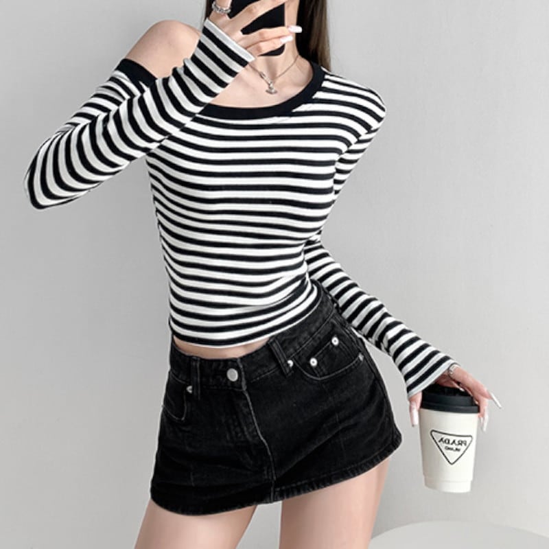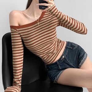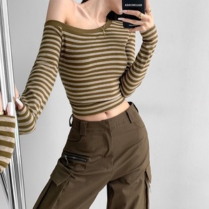 肩とお臍が見えるセクシーなショートトップ。 鮮やかなストライプ柄が抜群の存在感を放ちます。 カジュアルなボトムスと相性抜群のオシャレな一枚。 【サイズ】 S:バスト72cm/袖丈60cm/着丈50cm M:バスト76cm/袖丈61cm/着丈51cm L:バスト80cm/袖丈62cm/着丈52cm 【カラー】 ・ブラック ・ネイビー ・カーキ ・レッド *Lavissyで人気のアイテムはこちら♪ https://www.lavissy-fashion.shop/categories/2816592 *新商品入荷中!/SALE情報をcheck https://www.lavissy-fashion.shop/ **ご購入前に必ずお読みください** https://www.lavissy-fashion.shop/blog/2020/07/05/231434 【お届けについて】 こちらの商品は海外店舗より直接発送となる為、 ご入金から10日〜3週間前後で発送致します。 ◆注意事項 ・タイミングによっては 商品在庫切れにより 注文キャンセルとさせていただく恐れもございますので、予めご了承くださいませ。 ・こちらは輸入品となります。日本製とは検品基準が異なる為、 新品未使用品でもごくわずかな汚れや ほつれがある場合もございます。 ・仕入れ工場を変えることがあるため、記載サイズと若干異なる場合がございます。 ・商品の色味は、お手持ちのスマートフォンの画面によって実物と若干異なる場合がございます。 ・イメージ違いやサイズ交換等、お客さまご都合による交換、返品は対応出来かねます。 【お支払方法】 ・クレジットカード決済 (VISA/Master/JCB/AMERICAN EXPRESS) ・キャリア決済 (docomo/au/SoftBank/Y!mobile/UQmobile) ・後払い決済 ーーーーーーーーーーーーーーーーーーーー *Lavissy Instagram https://www.instagram.com/lavissy_official