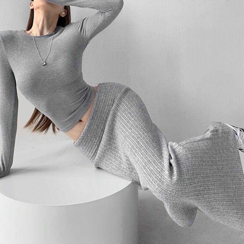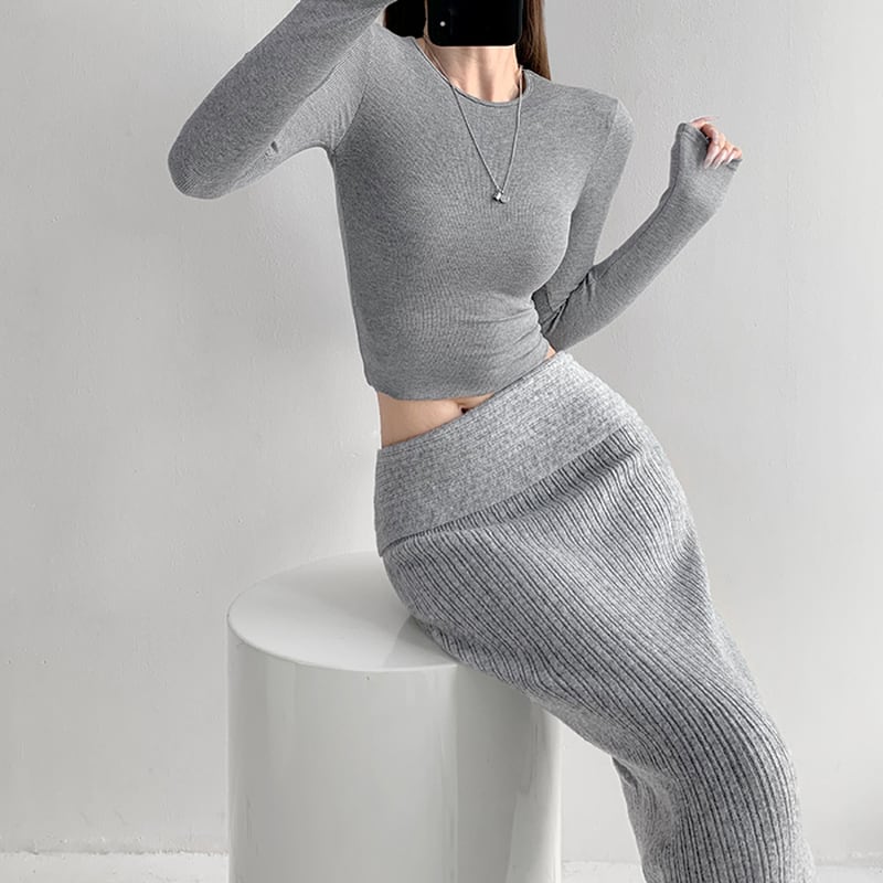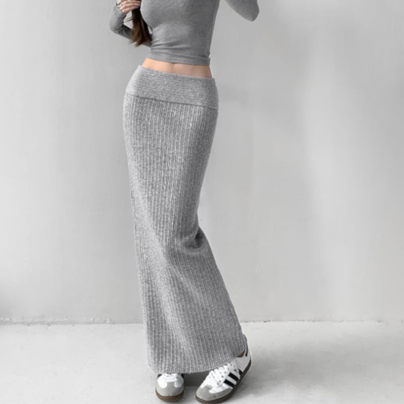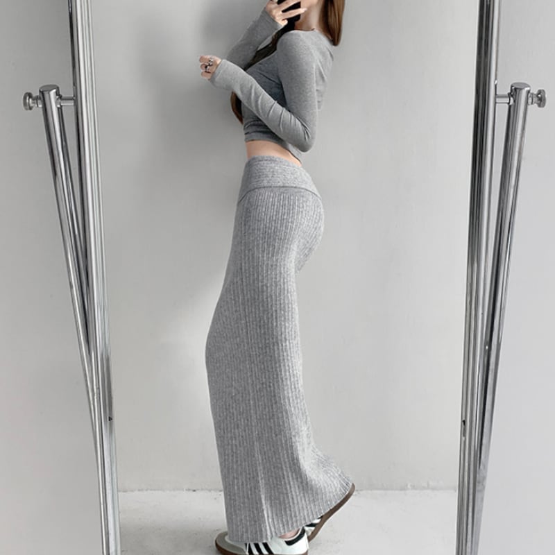 女性らしいシルエットを演出するロングニットスリムスカート。