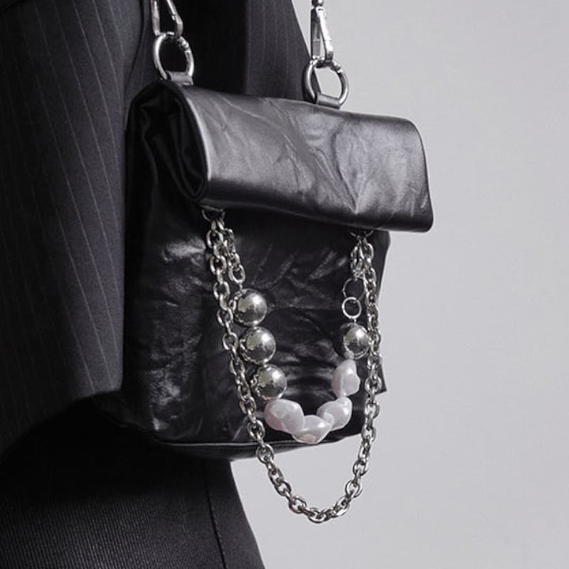 スタイリッシュなチェーンに大きなビーズの装飾が施され、どんなコーディネートにもマッチ