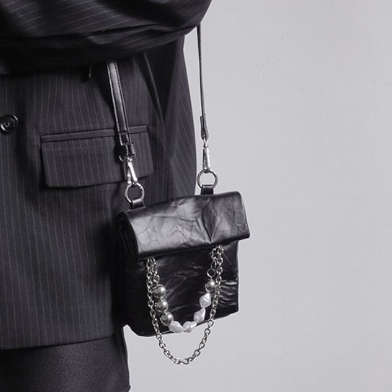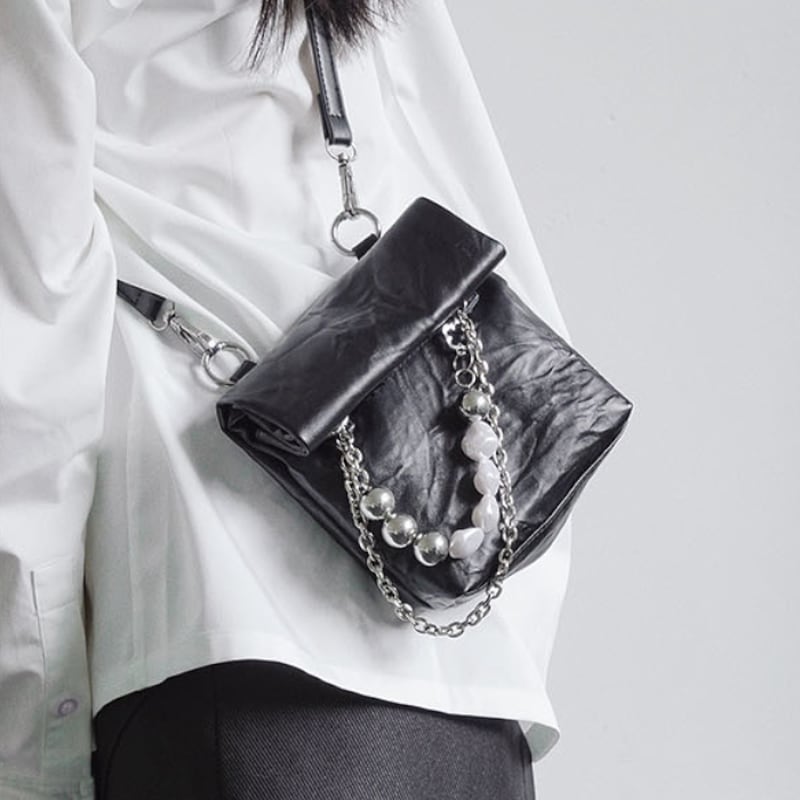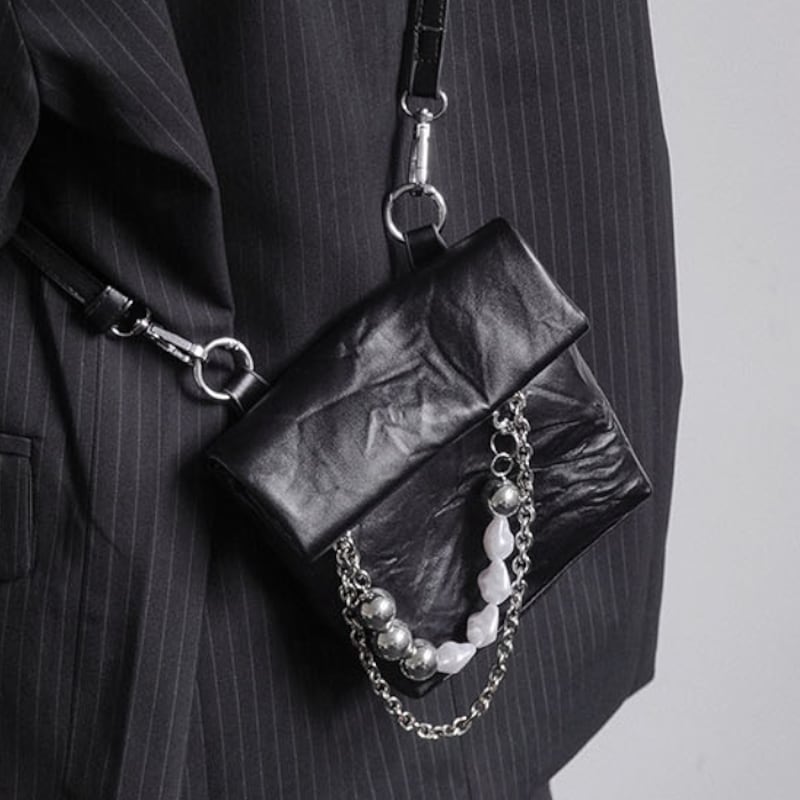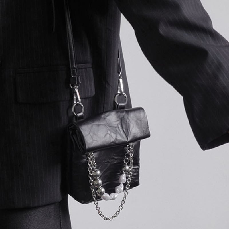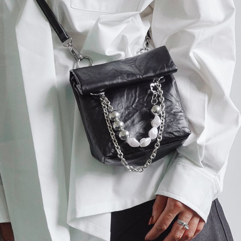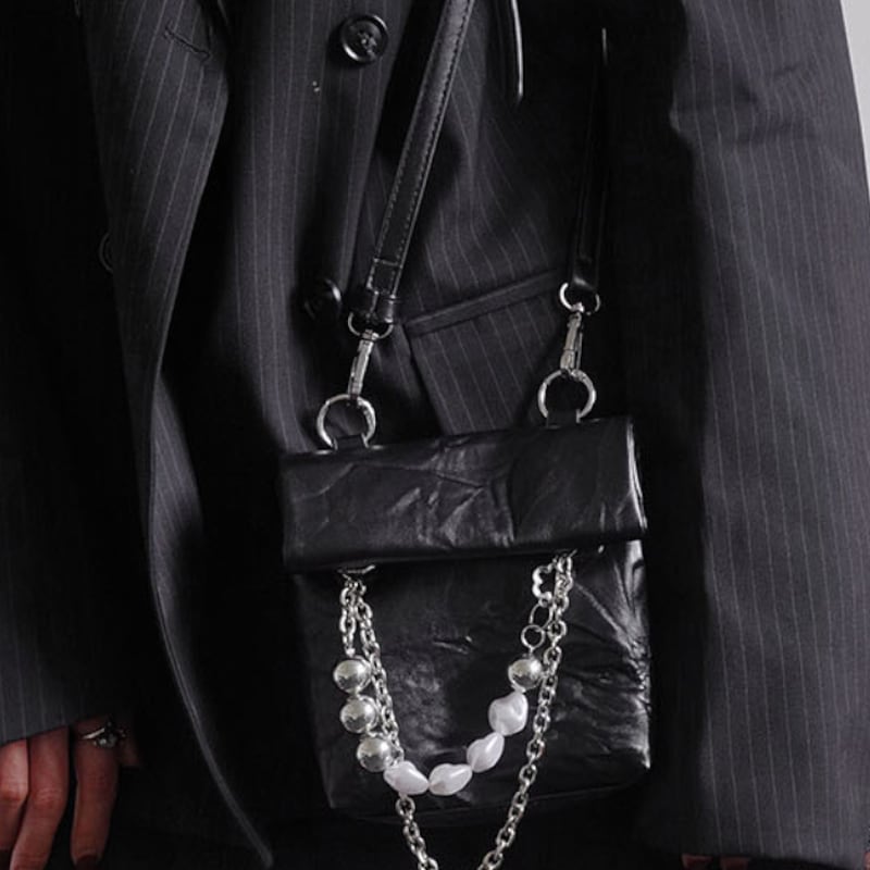 洗練されたスタイルと高級感を兼ね備えたチェーンフェイクレザーミニショルダーバッグ。