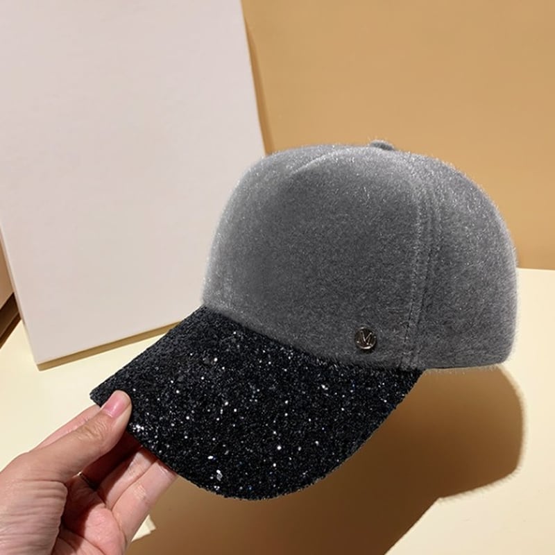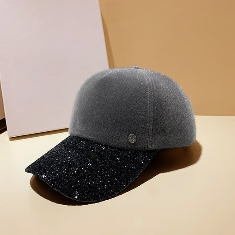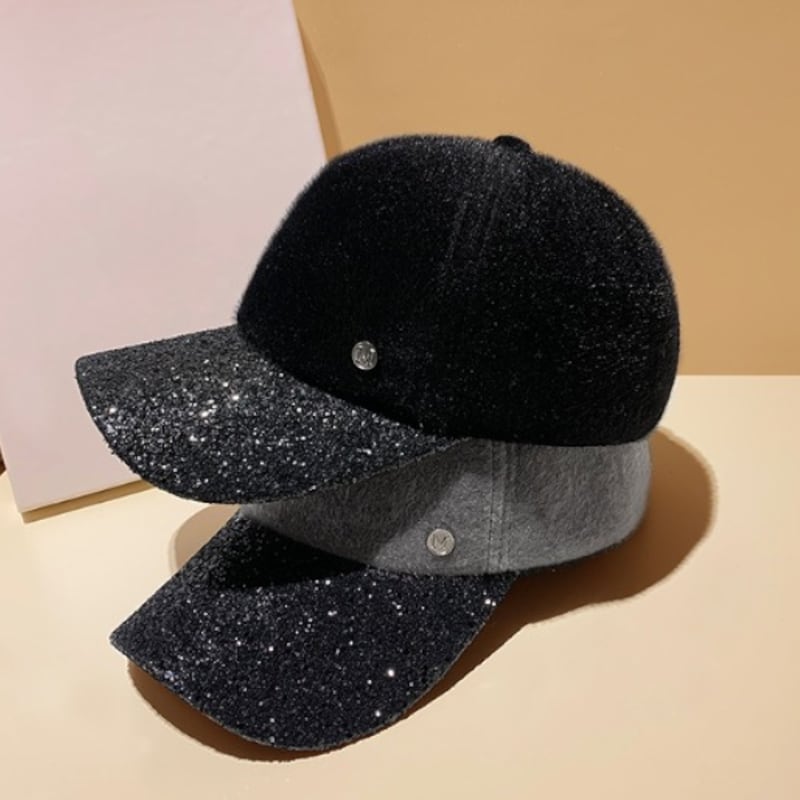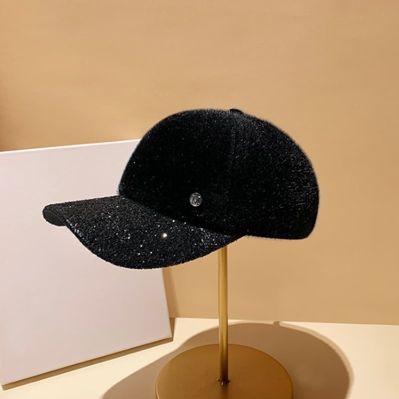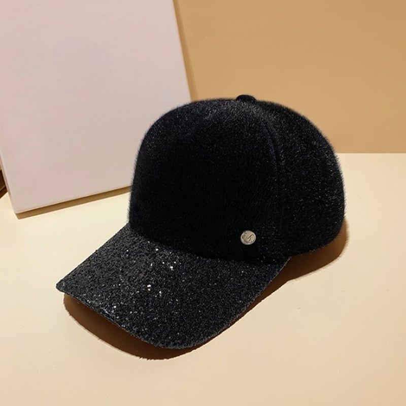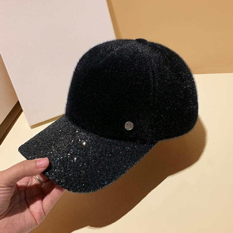 華やかな印象を与えるスパンコールミンクファーキャップ。