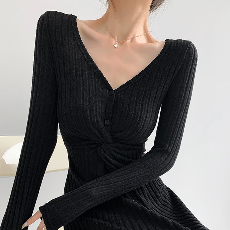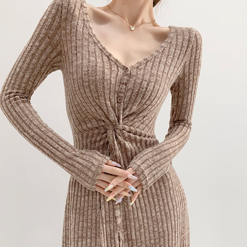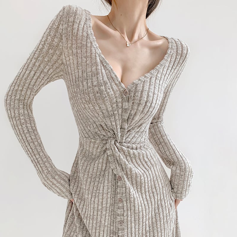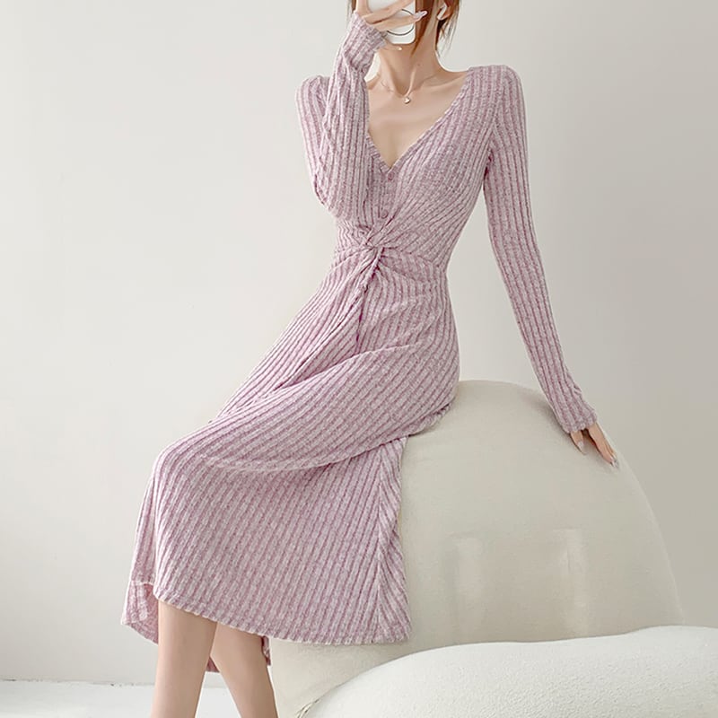 スタイリッシュなVネックデザインとツイストのディテールが魅力のニットワンピース。 身体のラインを美しく見せるシルエットが特徴で、カジュアルながらも洗練された印象を与えます。 【サイズ】 S:肩幅33+cm/バスト72+cm/袖丈62cm/着丈109cm M:肩幅34+cm/バスト76+cm/袖丈63cm/着丈110cm L:肩幅35+cm/バスト80+cm/袖丈64cm/着丈111cm 【カラー】 ・ブラウン ・グレー ・ブラック ・パープル *Lavissyで人気のアイテムはこちら♪ https://www.lavissy-fashion.shop/categories/2816592 *新商品入荷中!/SALE情報をcheck https://www.lavissy-fashion.shop/ **ご購入前に必ずお読みください** https://www.lavissy-fashion.shop/blog/2020/07/05/231434 【お届けについて】 こちらの商品は海外店舗より直接発送となる為、 ご入金から10日〜3週間前後で発送致します。 ◆注意事項 ・タイミングによっては 商品在庫切れにより 注文キャンセルとさせていただく恐れもございますので、予めご了承くださいませ。 ・こちらは輸入品となります。日本製とは検品基準が異なる為、 新品未使用品でもごくわずかな汚れや ほつれがある場合もございます。 ・仕入れ工場を変えることがあるため、記載サイズと若干異なる場合がございます。 ・商品の色味は、お手持ちのスマートフォンの画面によって実物と若干異なる場合がございます。 ・イメージ違いやサイズ交換等、お客さまご都合による交換、返品は対応出来かねます。 【お支払方法】 ・クレジットカード決済 (VISA/Master/JCB/AMERICAN EXPRESS) ・キャリア決済 (docomo/au/SoftBank/Y!mobile/UQmobile) ・後払い決済 ーーーーーーーーーーーーーーーーーーーー *Lavissy Instagram https://www.instagram.com/lavissy_official