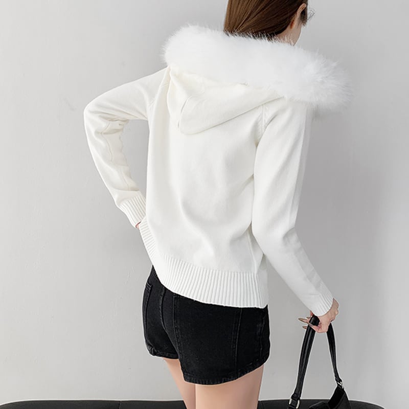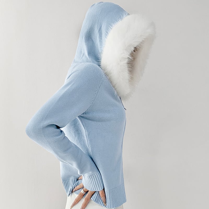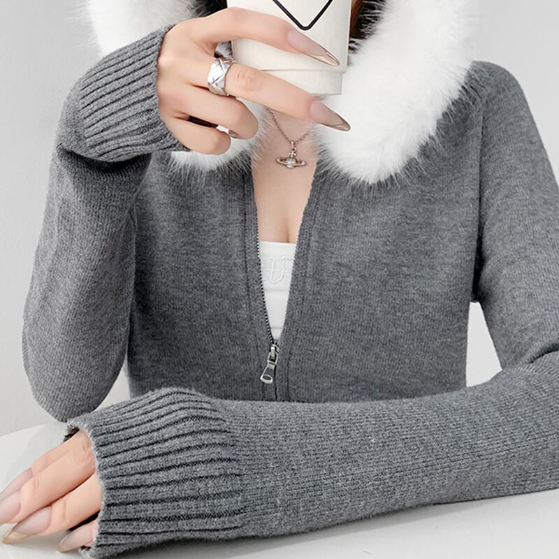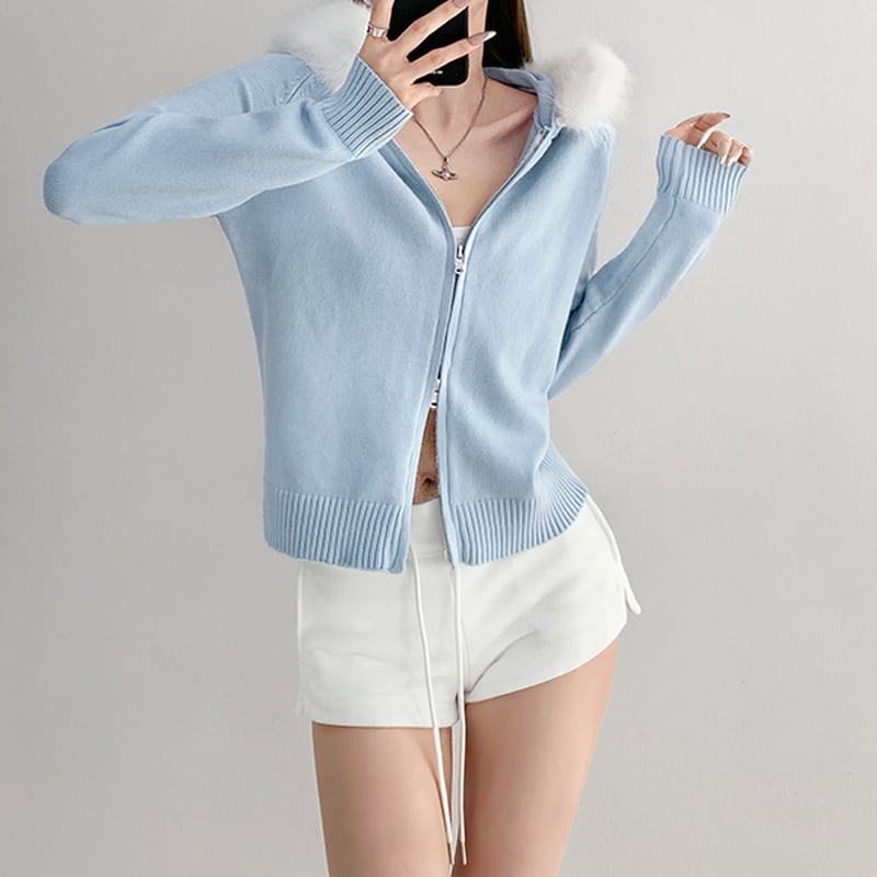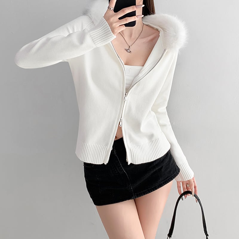 フェイクファーの襟が可愛らしいジップアップジャケット。