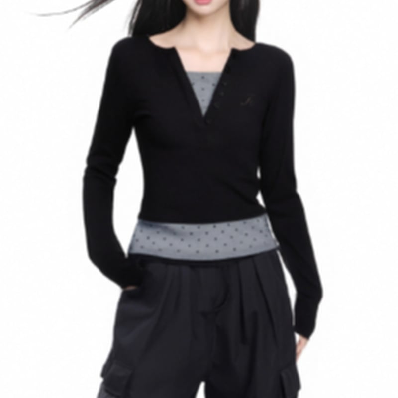 すっきりとしたヘンリーネックデザインとロングスリーブが魅力のニットトップス。シンプルながらも洗練されたシルエットは、様々なボトムスと合わせやすく、デイリーユースに最適です。ワードローブにプラスするだけで、コーディネートの幅が広がります。