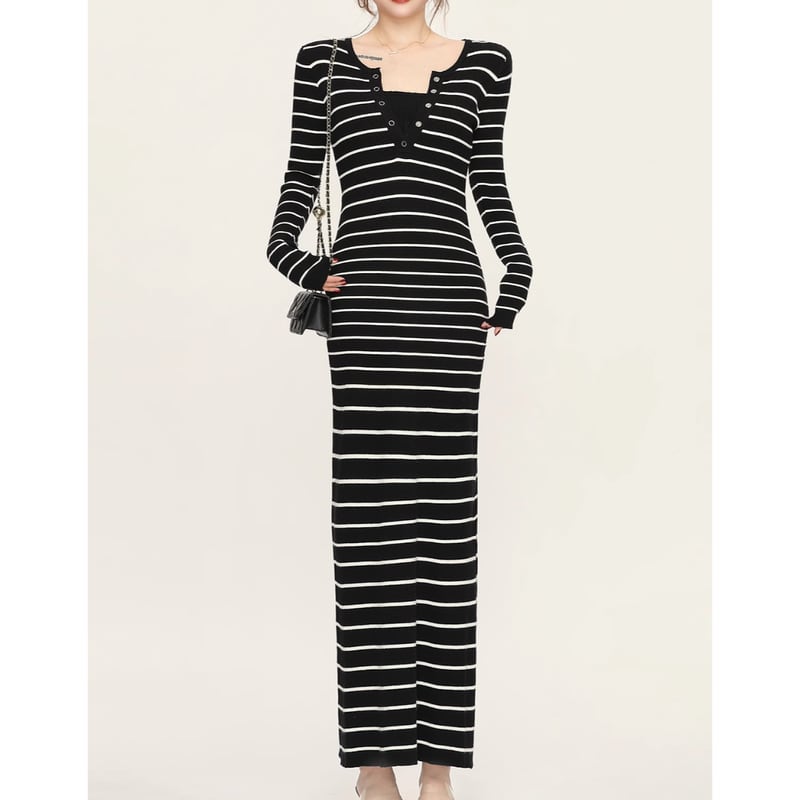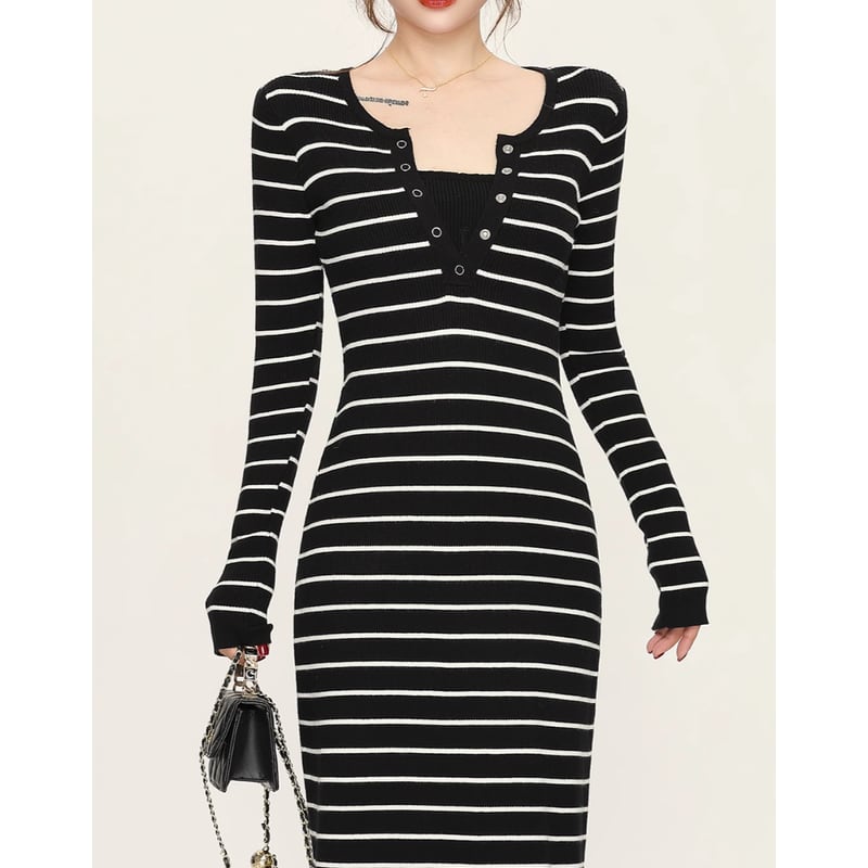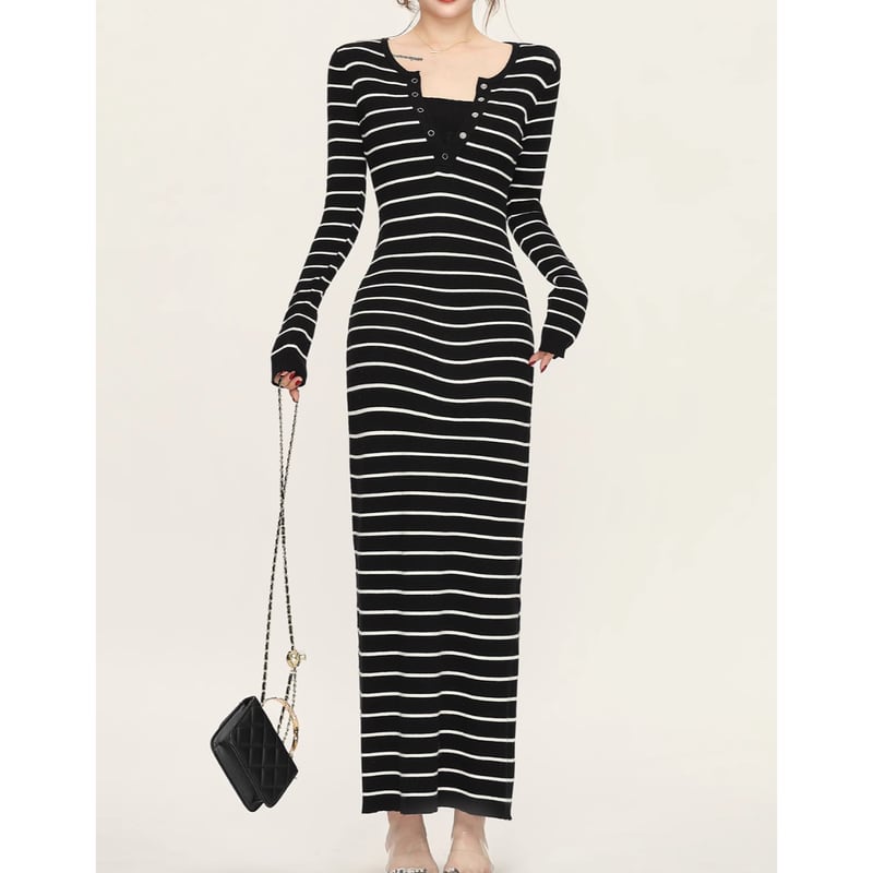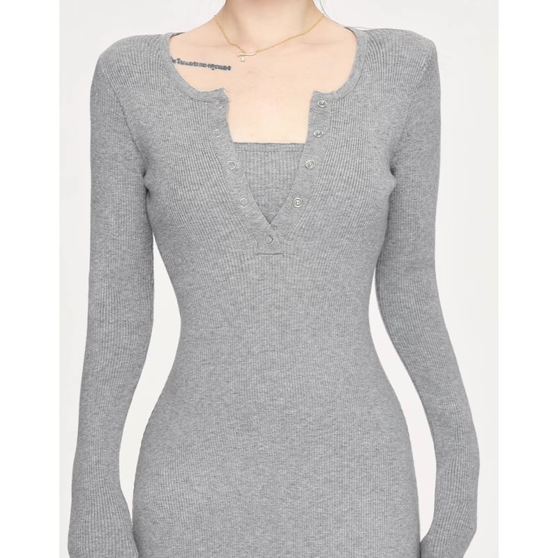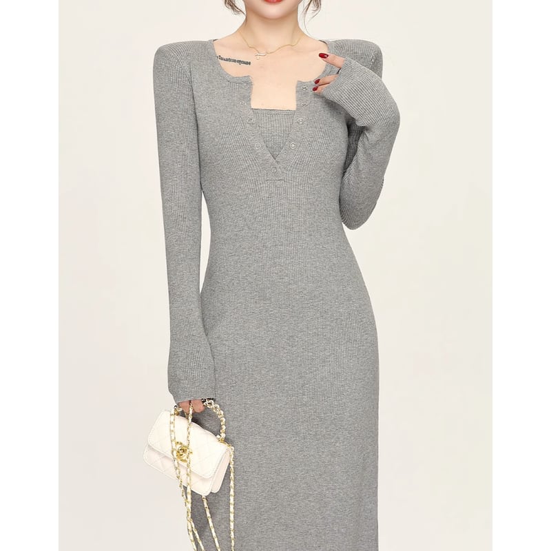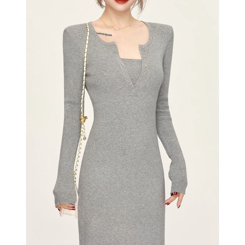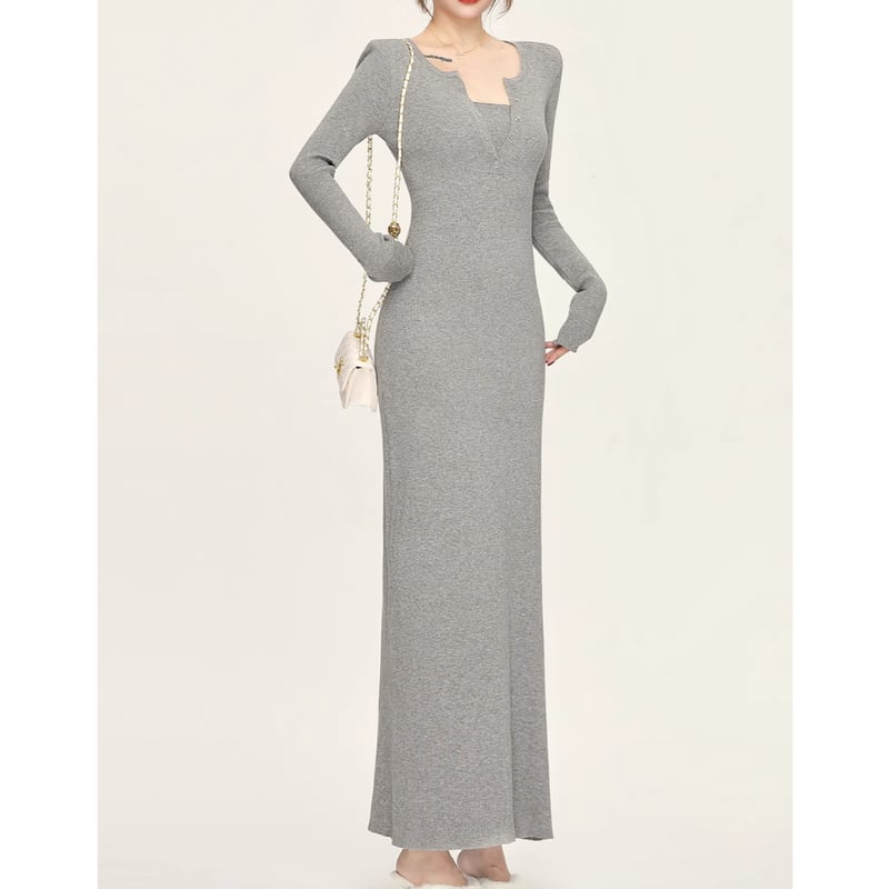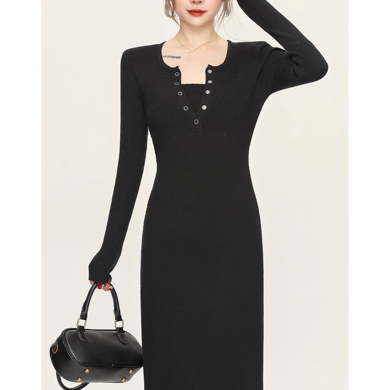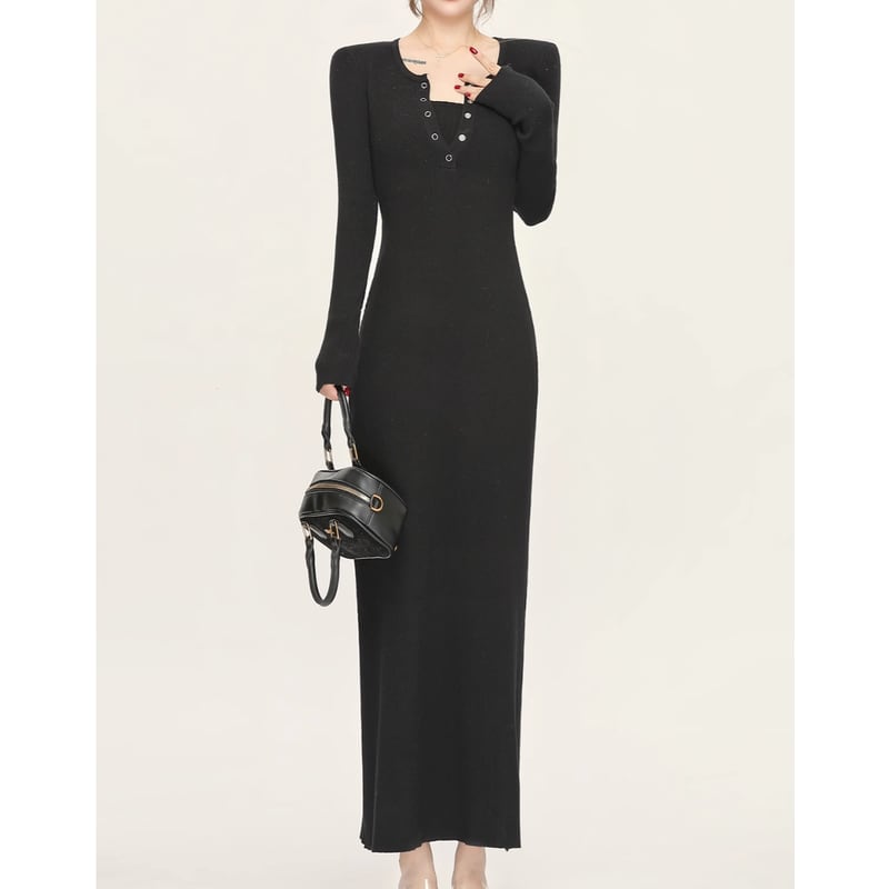 上品なVネックと、可愛らしいパフスリーブが魅力のロングニットワンピース。程よく体のラインを拾いつつ、着心地の良い素材で一日中快適に過ごせます。カジュアルにもフォーマルにも着こなせる万能アイテムで、様々なシーンで活躍します。