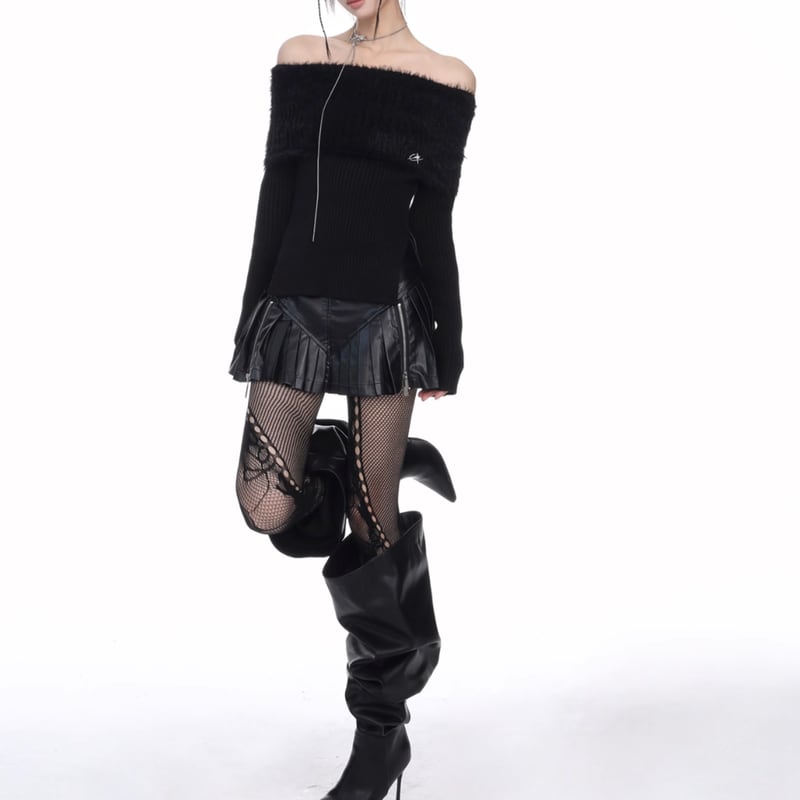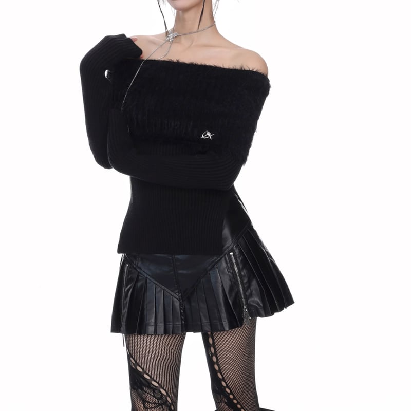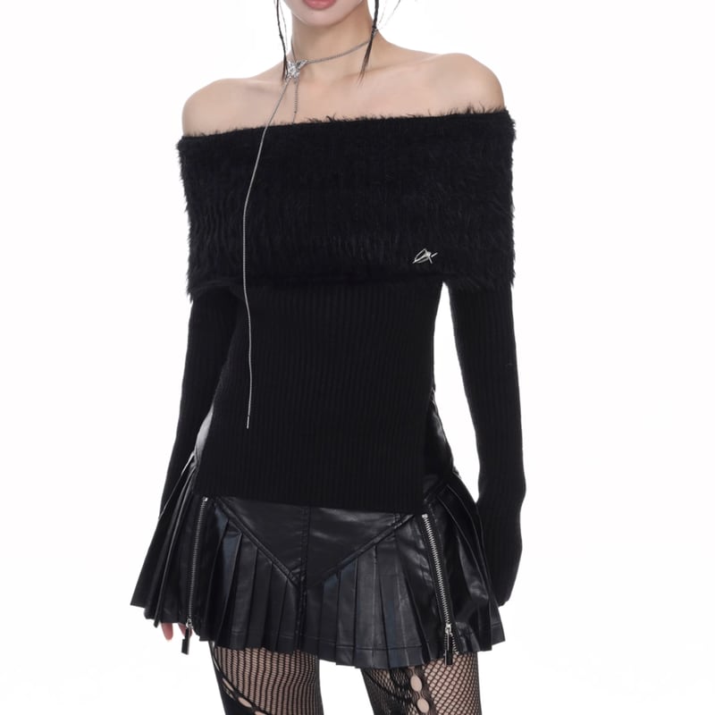 off-shoulder ribbed knit top la1336