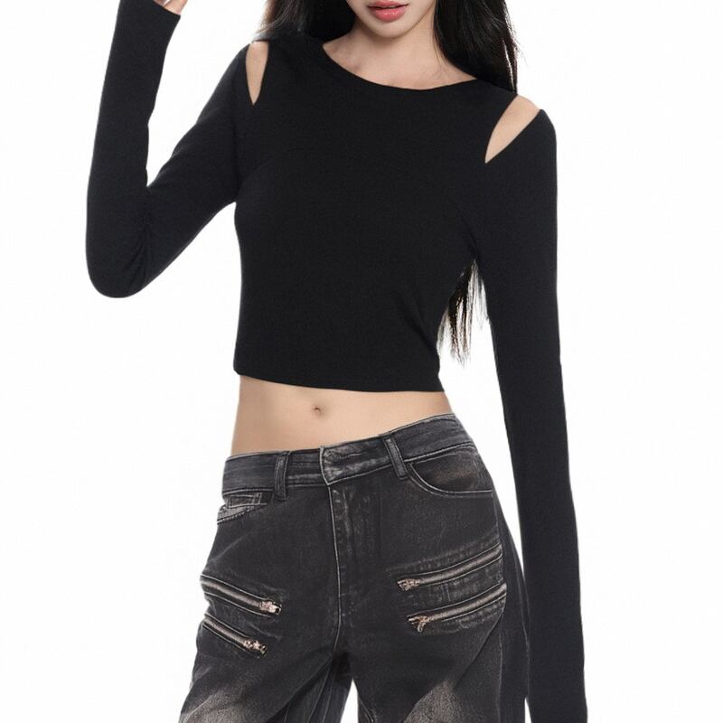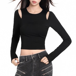 肩のカットアウトデザインが、さりげなく肌見せして女性らしさを演出します。