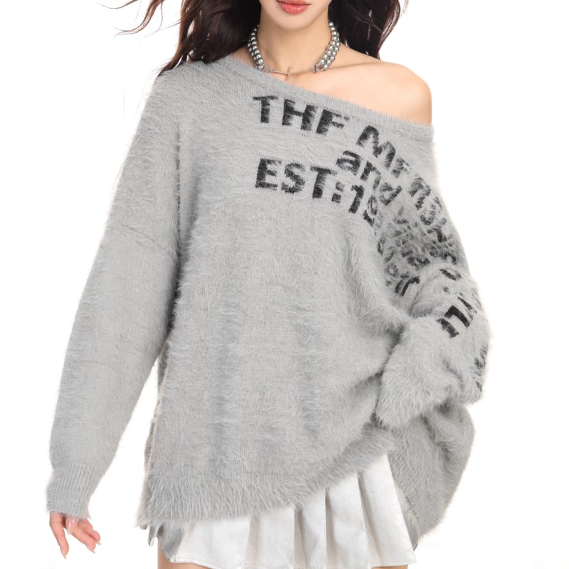 mohair knit drop shoulder oversized pullover la1332