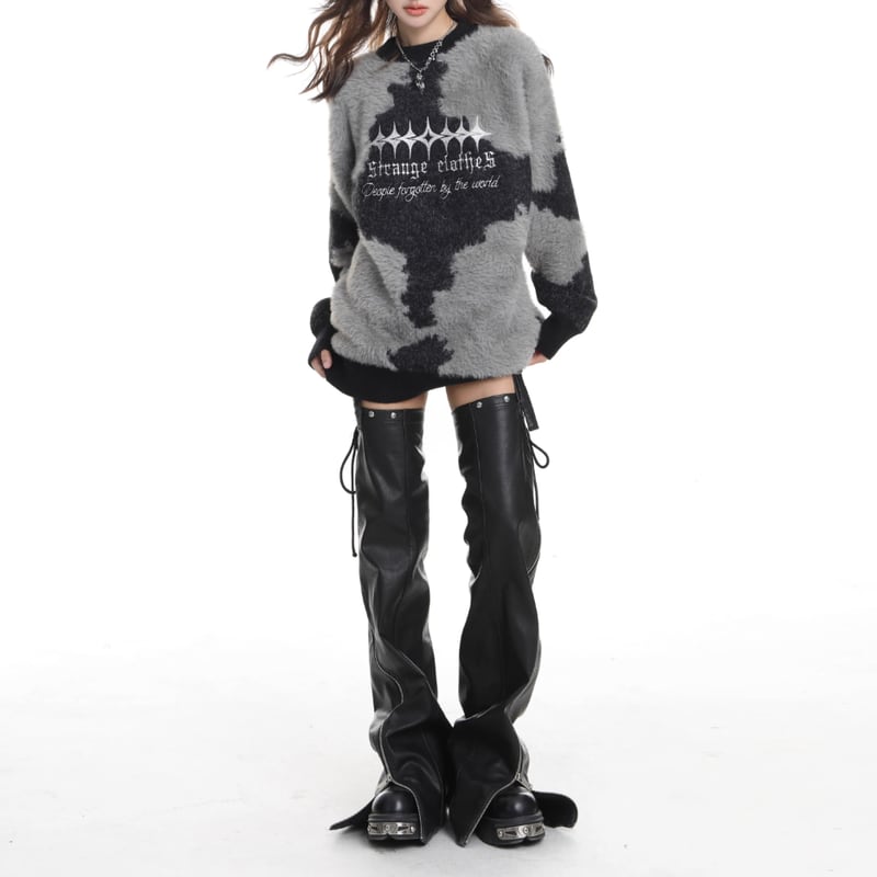トレンドのオーバーサイズシルエットと、目を惹くパターンデザインが魅力のニットプルオーバー。クルーネックのデザインが首元をすっきりと見せてくれるので、様々なボトムスと相性抜群です。デイリーユースはもちろん、特別な日のコーディネートにも活躍する、着回し力の高いアイテムです。