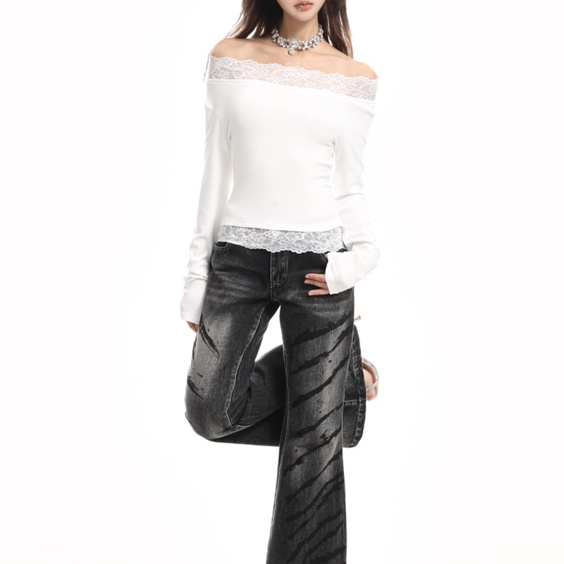 レースのディテールがポイントの、オフショルダーロングスリーブトップス。肩を落としたデザインが女性らしい柔らかな印象を与えます。シンプルなデザインなので、ボトムスを選ばず、様々なコーディネートをお楽しみいただけます。普段使いから特別な日まで、幅広くお使いいただけます。