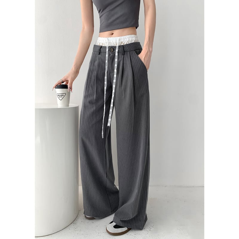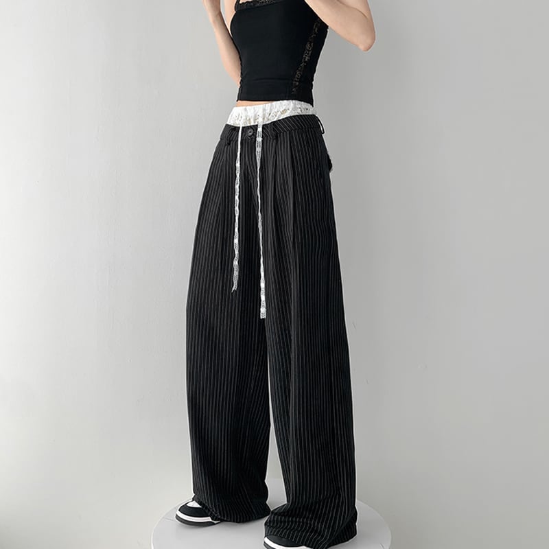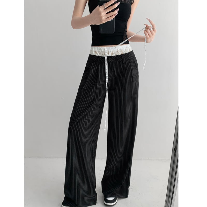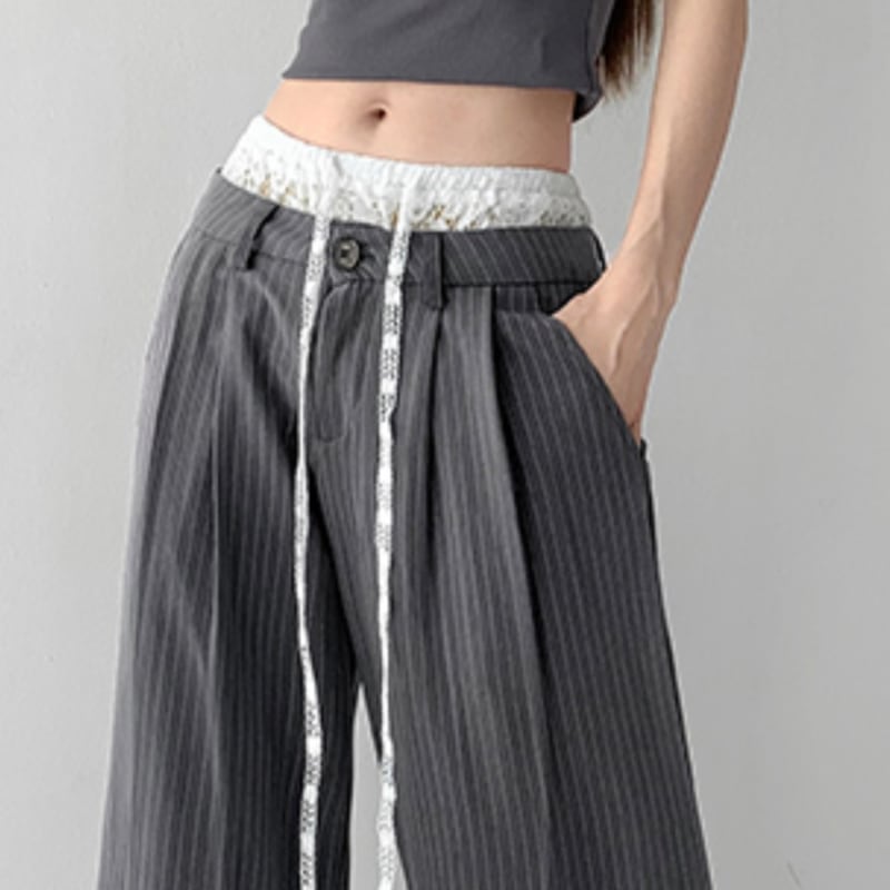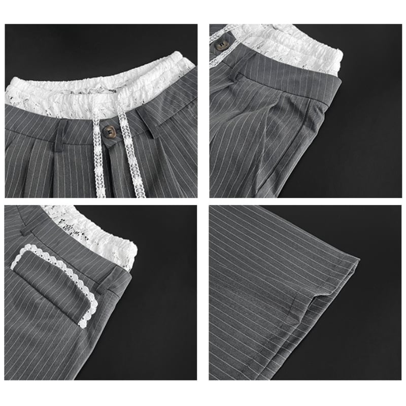 上品なストライプ柄と繊細なレースの組み合わせが魅力的なワイドパンツ。 ウエスト部分にあしらわれたレースが、さりげない女性らしさを演出します。 ゆったりとしたワイドシルエットで、リラックス感がありながらも、ストライプ柄が縦のラインを強調し、スタイルアップ効果も期待できます。 【サイズ】 S:ウエスト61cm/ヒップ112cm/着丈104cm/裾回り61cm M:ウエスト65cm/ヒップ116cm/着丈105cm/裾回り63cm L:ウエスト69cm/ヒップ120cm/着丈106cm/裾回り65cm 【カラー】 ・グレー ・ブラック *Lavissyで人気のアイテムはこちら♪ https://www.lavissy-fashion.shop/categories/2816592 *新商品入荷中!/SALE情報をcheck https://www.lavissy-fashion.shop/ **ご購入前に必ずお読みください** https://www.lavissy-fashion.shop/blog/2020/07/05/231434 【お届けについて】 こちらの商品は海外店舗より直接発送となる為、 ご入金から10日〜3週間前後で発送致します。 ◆注意事項 ・タイミングによっては 商品在庫切れにより 注文キャンセルとさせていただく恐れもございますので、予めご了承くださいませ。 ・こちらは輸入品となります。日本製とは検品基準が異なる為、 新品未使用品でもごくわずかな汚れや ほつれがある場合もございます。 ・仕入れ工場を変えることがあるため、記載サイズと若干異なる場合がございます。 ・商品の色味は、お手持ちのスマートフォンの画面によって実物と若干異なる場合がございます。 ・イメージ違いやサイズ交換等、お客さまご都合による交換、返品は対応出来かねます。 【お支払方法】 ・クレジットカード決済 (VISA/Master/JCB/AMERICAN EXPRESS) ・キャリア決済 (docomo/au/SoftBank/Y!mobile/UQmobile) ・後払い決済 ーーーーーーーーーーーーーーーーーーーー *Lavissy Instagram https://www.instagram.com/lavissy_official