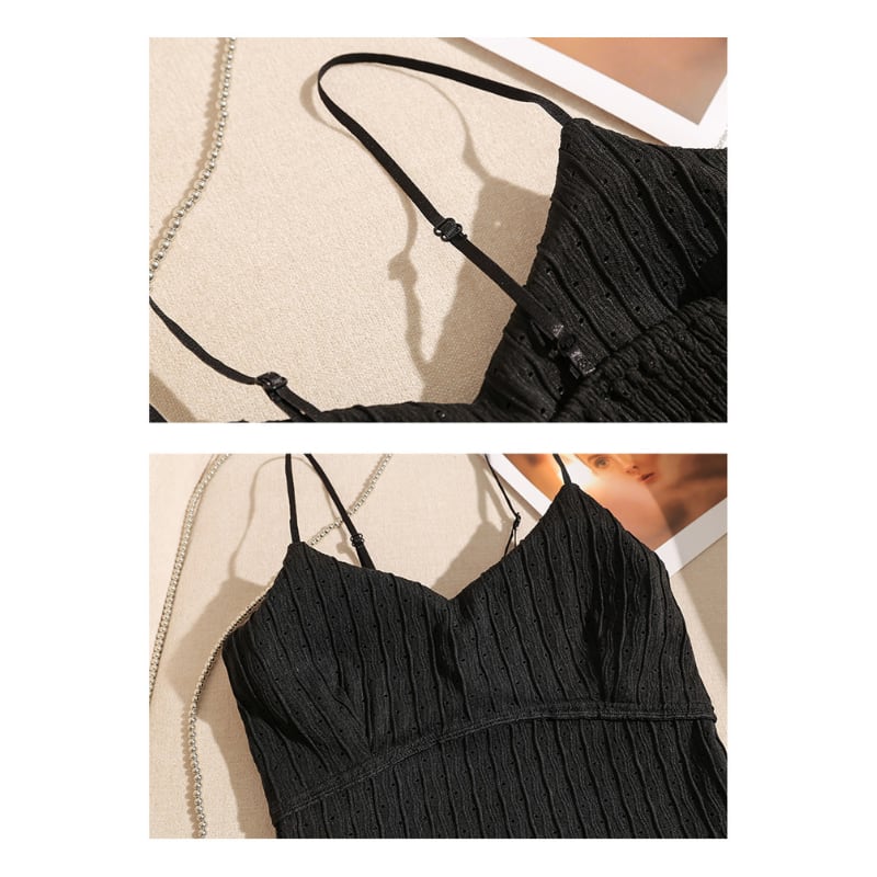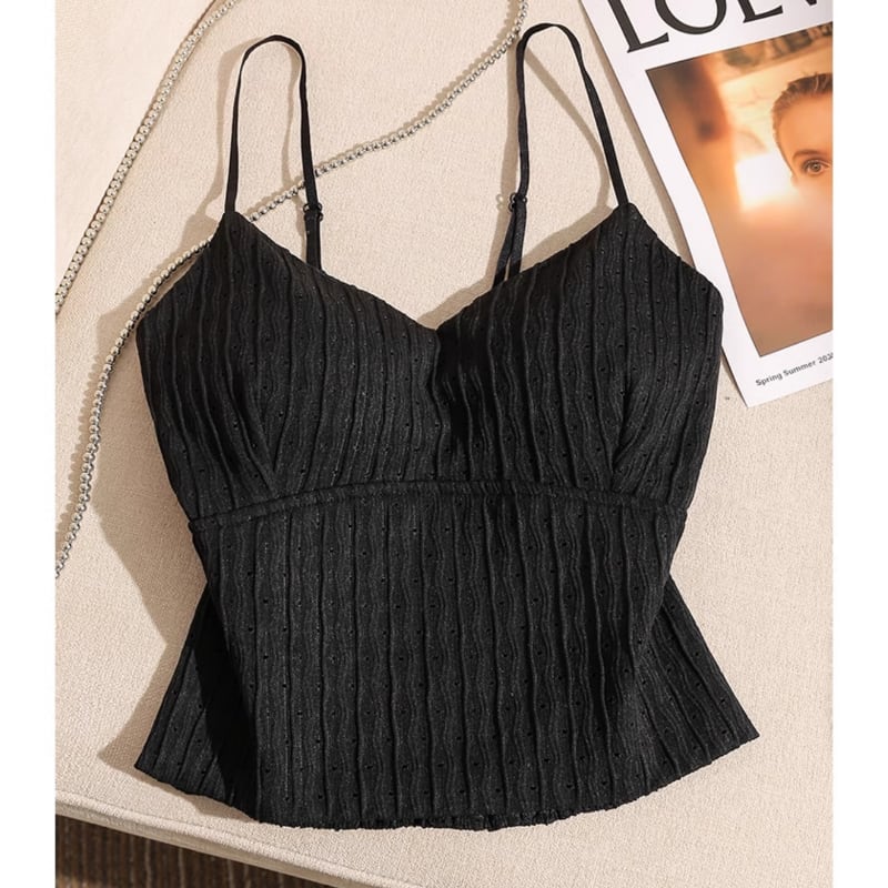 thin strap V-neck black camisole la1439